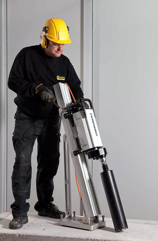 Модульная установка алмазного бурения Pentruder MDU-NTGRA® воплотила в себе высокое качество и производительность, надежность и удобство в обращении. Она сочетает в себе два сверлильных двигателя в одном — он работает от 1-фазной и 3-фазной электрической сети. Диапазон скорости вращения шпинделя очень широк. С установкой алмазного сверления Pentruder NTGRA® можно легко и эффективно сверлить отверстия от 30 до 750 мм.