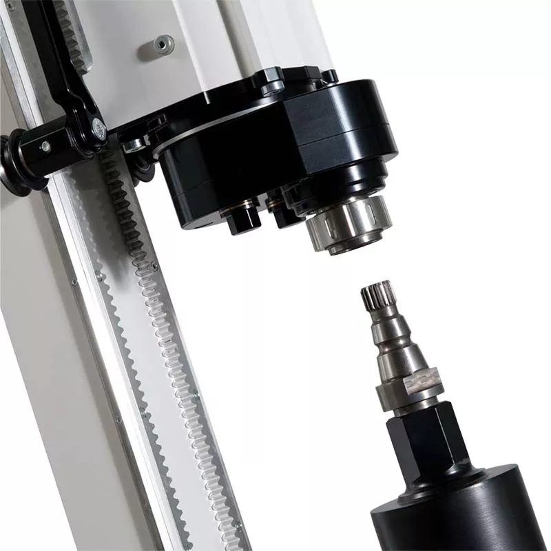 Все шпиндели доступны с разной резьбой или быстросъемным соединением. Быстросъемное соединения является запатентованной функцией, и позволяет быстро менять алмазные коронки.