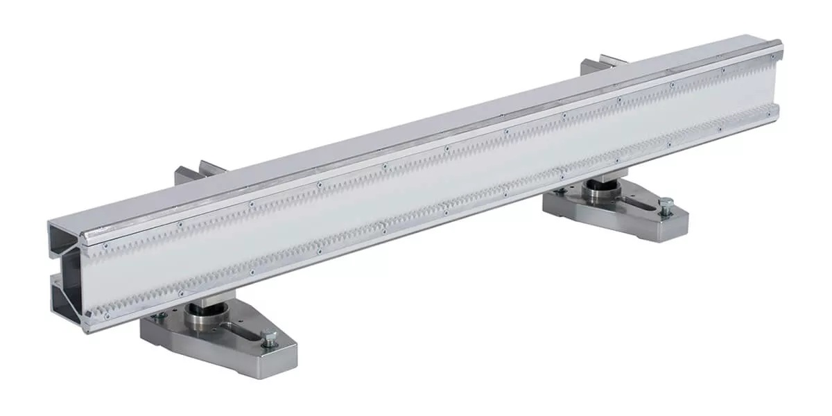 Для монтажа одной направляющей требуется минимум две установочные лапы, а расстояние между установочными лапами не должно превышать 2 метров. Если используются направляющие только с одной зубчатой рейкой, убедитесь, что все они расположены правильно для зацепления с шестерней перемещения на стенорезной машине.